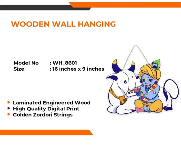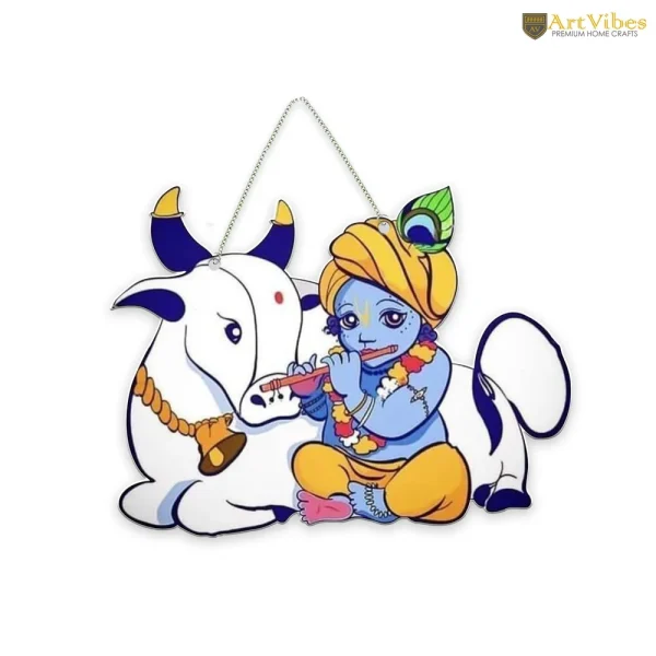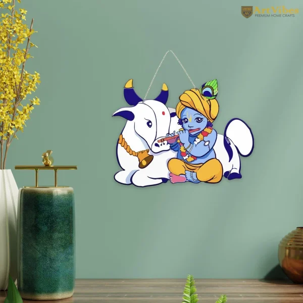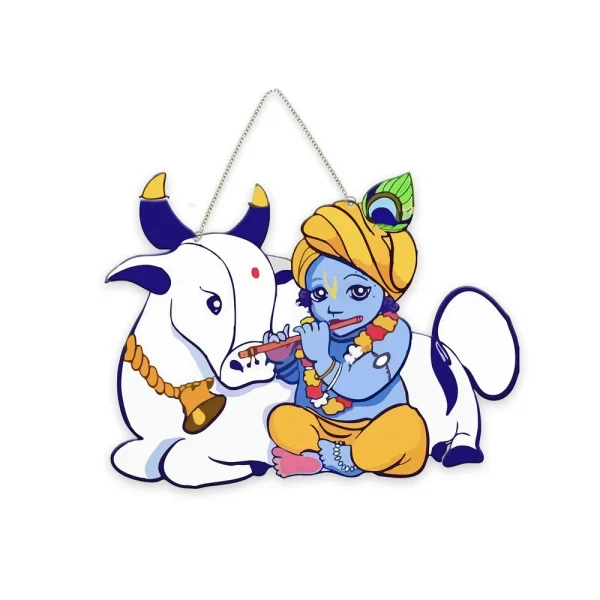 MDF Wooden Wall Hanging – Krishna & Gau Mata Theme (8 x 9 Inch)