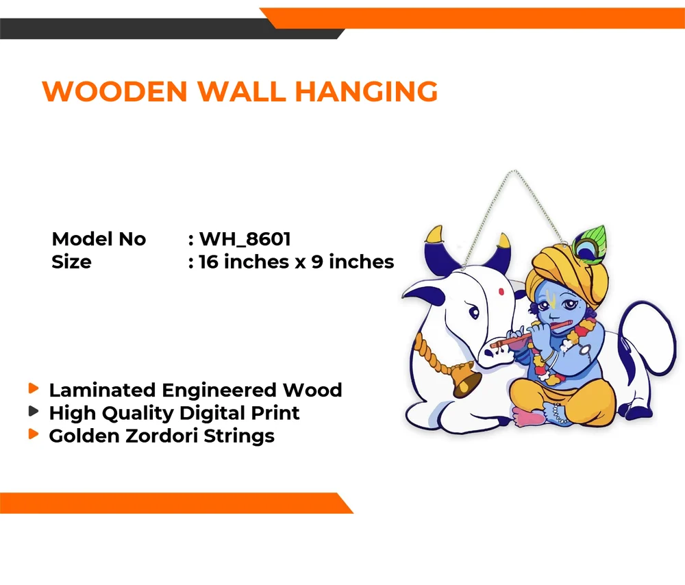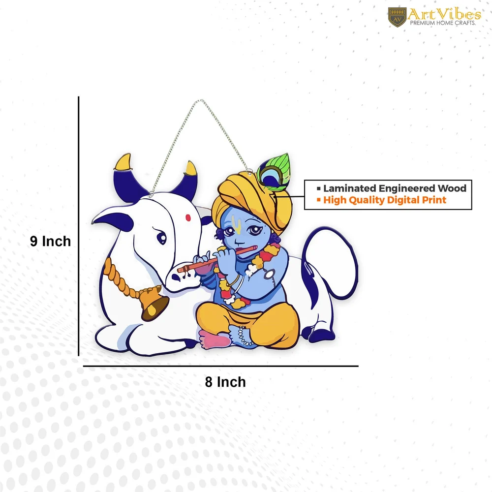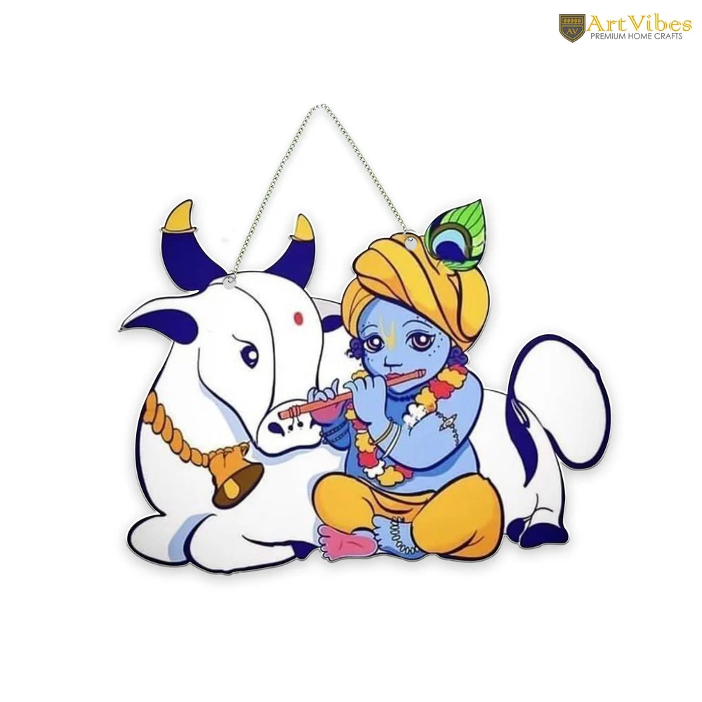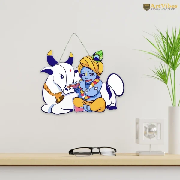 Multicolor MDF Krishna and Gau Mata Wall Hanging, For Home, Size: 8 Inch *9 Inch